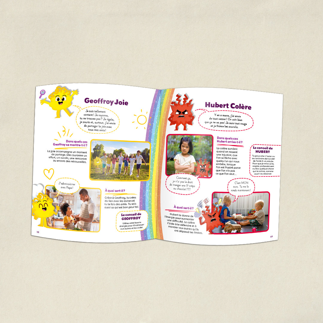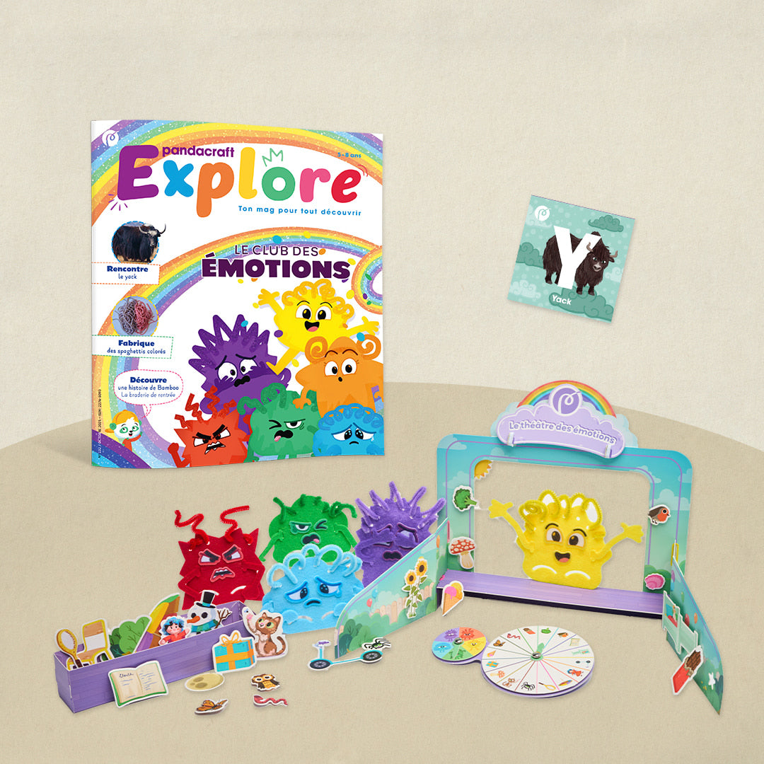 Dans le magazine, entre dans le club des émotions : découvre comment elles naissent, apprends à les reconnaître et trouve des astuces pour les exprimer sans te laisser déborder. Et toujours : des personnages rigolos, des histoires, des jeux et des conseils pour mieux te connaître.