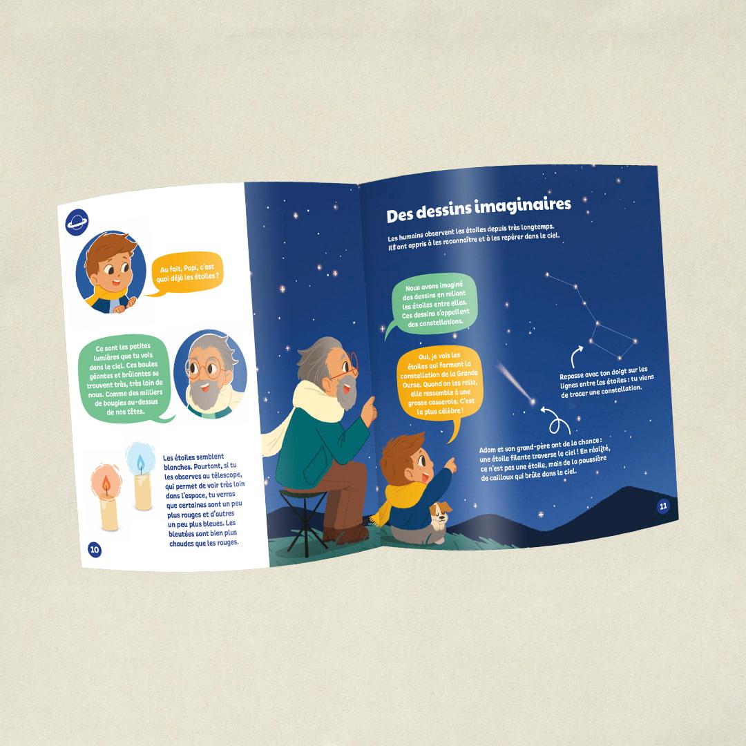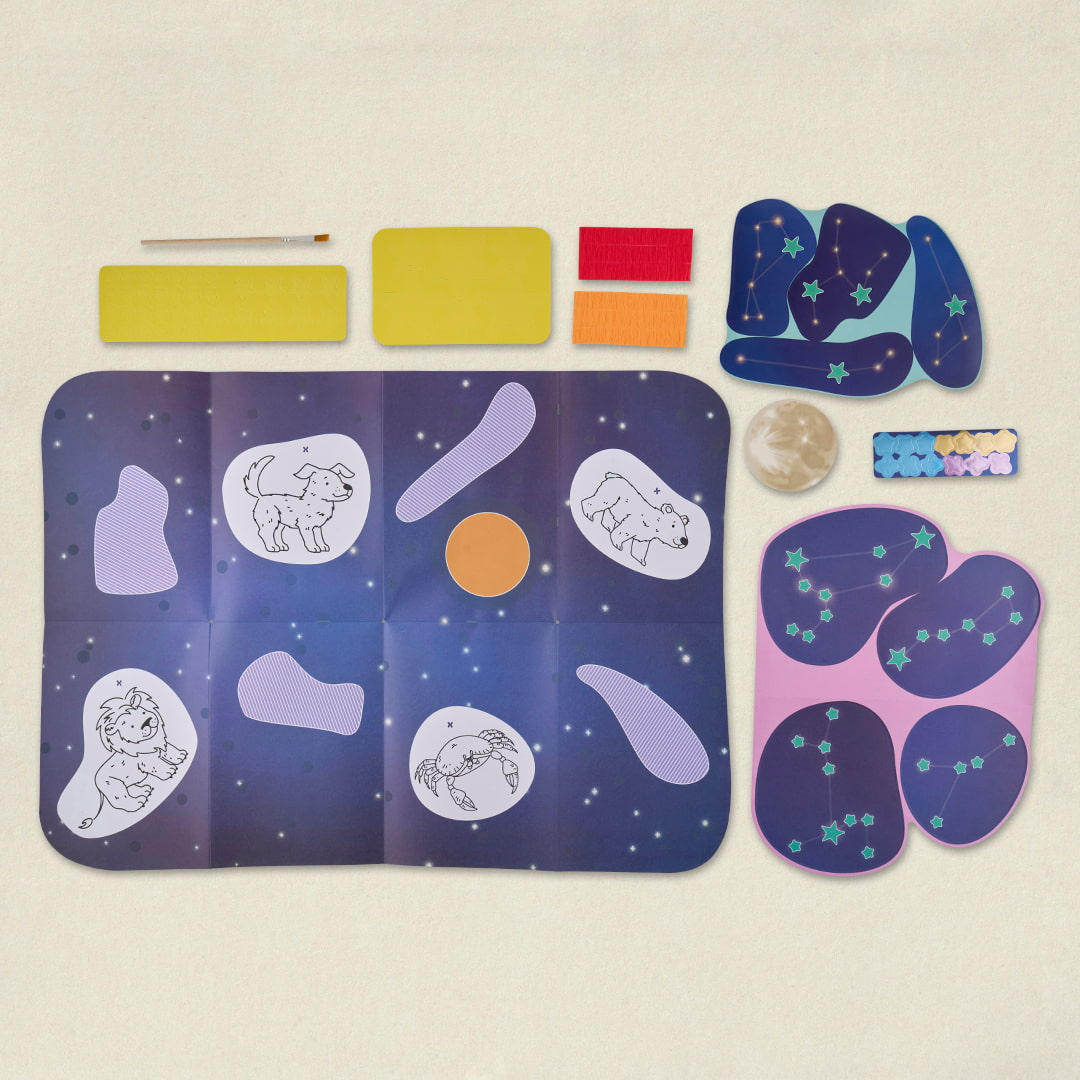 Assemblez ensemble un grand poster phosphorescent des constellations à afficher dans sa chambre. Une activité magique pour explorer les étoiles, reconnaître des formes simples et nourrir l’imaginaire, tout en développant la motricité fine et le vocabulaire.