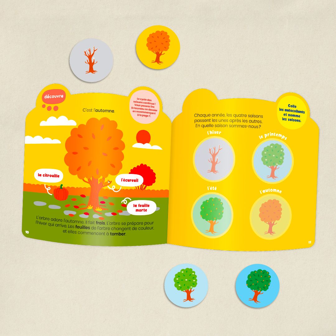 Observez les changements de saison et découvrez le vocabulaire associé (flocons, feuilles…). Grâce à 4 puzzles joliment illustrés, amusez-vous à coller ensemble les autocollants représentant des objets emblématiques de chaque saison, puis associez-les à la bonne période de l’année. Un jeu de logique et de vocabulaire pour partager, jouer et rejouer ! Vivez ensemble de doux moments en lisant et en jouant dans les autres rubriques de son magazine, 100% adapté dès 1 an, pour découvrir le monde en images et en mots.